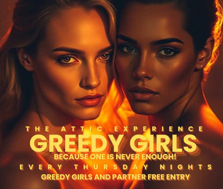Step into one of the most talked-about weekly events at The Attic Experience. Greedy Girls is a well-established Thursday night known for its confident energy, open dynamic, and clearly defined structure that creates a unique and engaging experience.