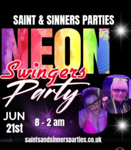 Step into the seductive world of Saints & Sinners for their Neon Swingers Party — a vibrant night of glowing temptation and sensual freedom. From 8PM to 2AM, Sutton House transforms into a glowing adult playground where inhibitions melt under UV lights and curiosity is rewarded.