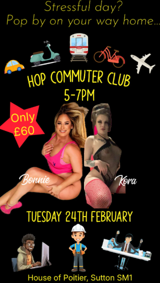 Commuter Club at House of Poitier in London. A relaxed early-evening swinger social for unwinding, connection, and stress-free after-work indulgence.