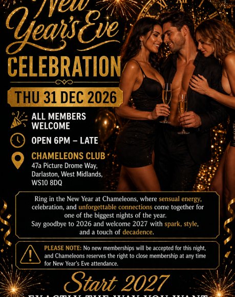 Ring in the New Year at Chameleons, where sensual energy, celebration, and unforgettable connections come together for one of the biggest nights of the year. This exclusive members-only event sets the perfect stage to say goodbye to 2025 and welcome 2026 with spark, style, and a touch of decadence.