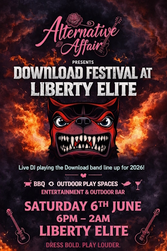 Alternative Affair at Liberty Elite in Lutterworth. A festival-inspired club night with music, BBQ, and a high-energy alternative atmosphere.